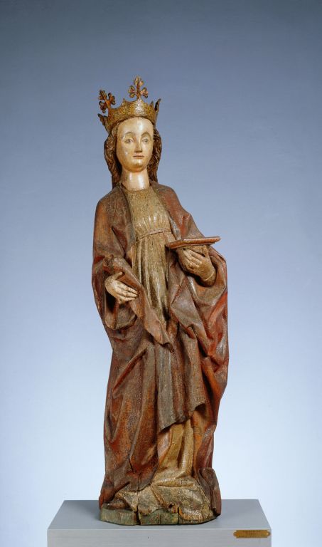 Numerous medieval sculpture workshops supplied reliefs and statues to churches for their altars. Crucified Christ, Madonna and Child, and Pietà rank among the characteristic religious motifs. The earliest sculptural pieces still demonstrate Romanesque vestiges, but the main body of exhibits are stylistically determined by the Gothic style which in some areas of Carniola, Styria and Carinthia lasted deep into the 16th century. The zenith of Gothic sculpture in Slovenia is represented by the works of the Ptujska gora sculpture workshop represented by The Beautiful Madona and the Pietà from Podsreda. To the period of the so-called late Gothic baroque style around 1500 belong the Virgin with ChildSt Catherine and St Magdalene from Avče, and the extraordinarily expressive Christ Crucified from Dramlje. Renaissance sculpture is represented by plaster casts of the Bishop Ravbar epitaph and two reliefs of St Andrew’s altar from Gornji Grad by Oswald Kittel.