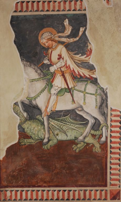 The leading position in Gothic painting belongs to frescoes. The collection presents a few examples of original fragments and several copies which illustrate the most frequent motifs, such as St Christopher, St George, the Procession and the Adoration of the Magi, etc., and a few special motifs, such as Sunday Christ and the Dance of Death. Along with numerous masters with provisional names we also know several artists by name and their idiosyncratic oeuvres, e.g. Johannes Aquila, Johannes de Laybaco, Master Bolfgang. Their production was part of the contemporary art scene in the sub-Alpine space, where from old times onwards stylistic influences of northern and southern countries had been intertwined.