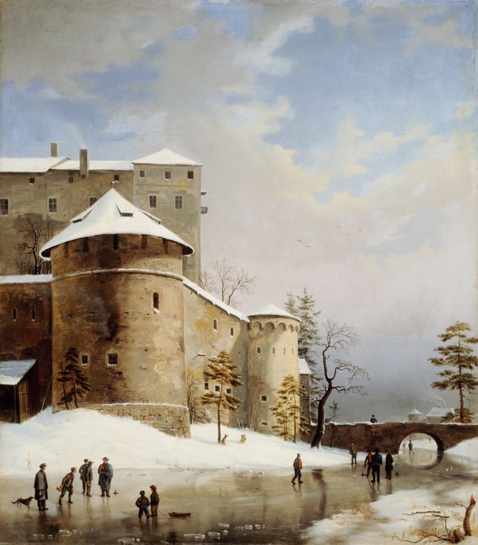 Interest in landscape first appeared as the background of portraits; towards the mid-century first autonomous city vedute emerged. The Biedermaier landscape is idyllic, descriptive, and furnished with staffage figures. Painters were attracted by tourist destinations and locations that were related to homeland identity: Mt. Triglav, Lake Bohinj, Bled. Anton Karinger and Marko Pernhart established themselves as explicit landscapists. The latter became famous for his multi-part panoramas from mountain peaks.