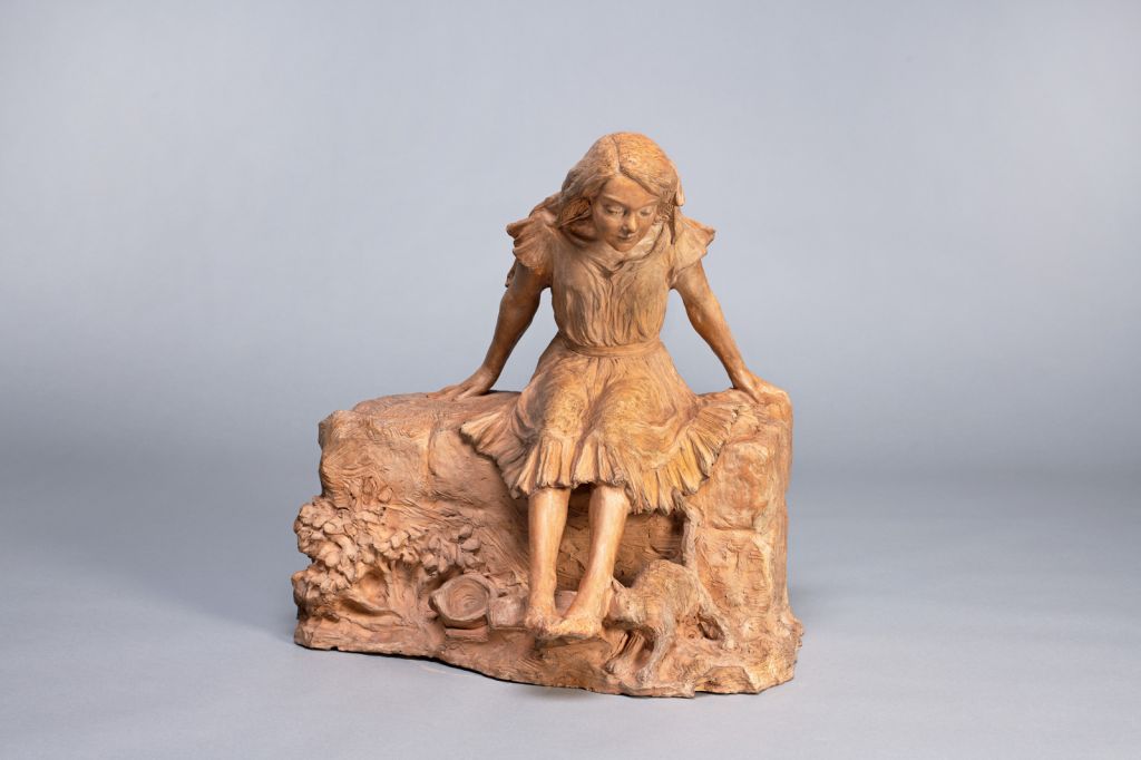 The terracotta sculpture Girl with a Kitten is signed “Jean Zajec” at the back, which suggests that the work was created around 1906, when Zajec was living in Paris.