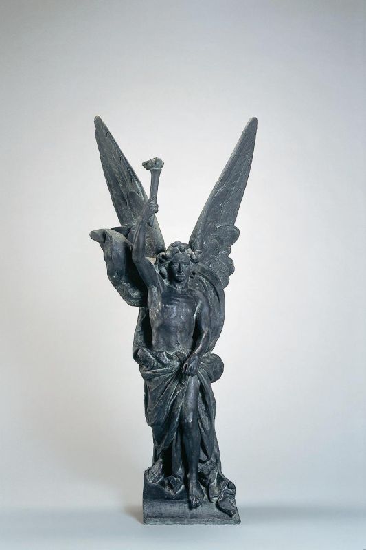 By this time Gangl had already become an acknowledged sculptor and recipient of the commission for the first Slovenian public monument to Valentin Vodnik (1887–1889), which was erected in front of the former girls’ secondary modern school in Ljubljana. The piece produced in the Academic Realist style with Neo-Classical and Neo-Baroque sculptural elements was an important milestone in the development of Slovenian sculpture, since it paved the way to accentuating national values by depicting prominent personalities in Slovenian cultural life. In 1889, only a year before his study trip across Italy and visit to France, Gangl produced the marble relief The Resurrection of Christ in the lunette of the main doorway of the cathedral in Đakovo. In 1893 he produced the wood relief of The Nativity for the Church of Sacré-Coeur in Pressbaum near Vienna. The sculptor then, before producing the monument to Baron Weichard Valvasor (1894–1903) in front of the then Provincial Museum, dedicated himself during 1890–1892 to the sculptural ornamentation of the Provincial Theatre in Ljubljana. In the Neo-Baroque style, following the model of sculptural ornamentation on the façade of the Paris Opera which features Dance by Jean-Baptist Carpeaux, he enriched the façade of today’s Opera house with the figural composition of the Genius of the Theatre with Opera and Drama and the sculptures Comedy and Tragedy.