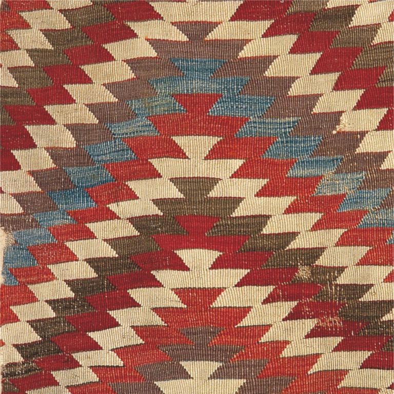 The kilim (also ćilim, kelim) began to draw attention as a collector’s item only a good thirty years ago. Since then their demand has increased and a special area of expertise has formed, aiming to place the material known up till this point into a framework according to its time and place of origin. The theory links the textile samples with the oldest ornamental arts which stem back all the way to Neolithic times when the first looms appeared. However, the objects that have been preserved up till today are rarely older than three centuries – older textiles are immensely rare.