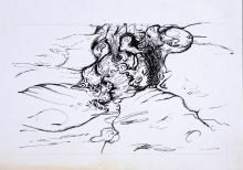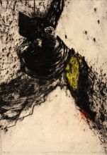 The search for identity of which he was conscious from his student years on, was realized in his mature work as an idiolect. After continuous and for him unsatisfying attempts to establish a relationship with the contemporary currents and phenomena and with the modernist canon's watered down authority, he embraced that which carried the promise of certainty: printmaking as the medium, historical achievement as the standard of quality, which do conform with the modernist canon, and subjective intimation in the mode of visual address. The existential urgency and presence, which should be expressed by an intense, gestural writing, printed on paper as an organic tension and anxiety. In particular the compositions of the last series printed on the raw edge address the viewer with an intense, uncompromising power: the unease is only the obverse of pleasure. Kovačič's prints serve both simultaneously. One has no choice but to accept or refuse both.
