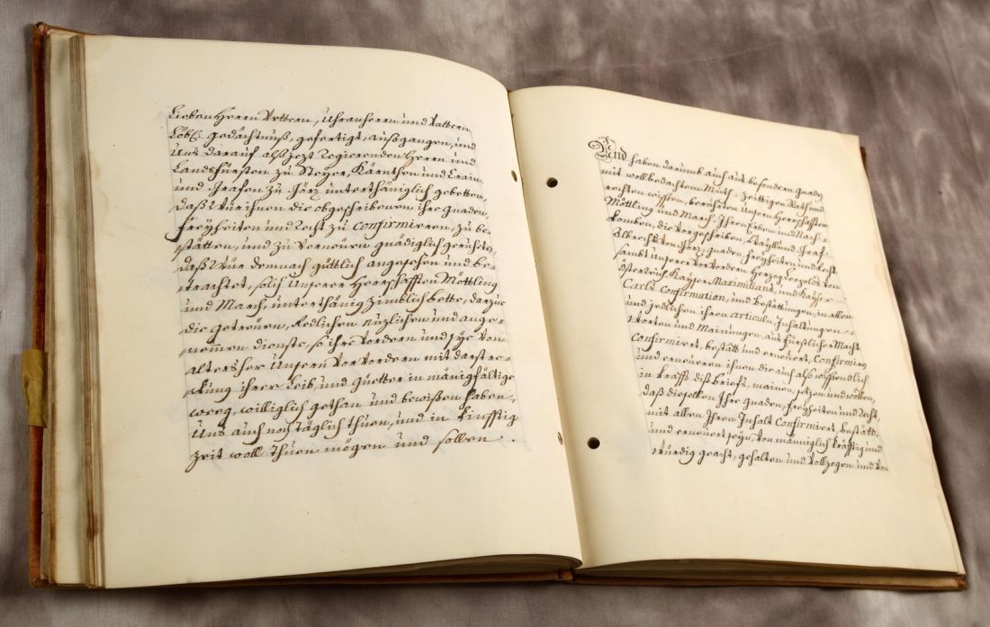 “Estate” privileges were granted through inheritance, and the provincial prince was required to pledge his respect for the provincial privileges gained up to that time. The verbal acceptance was followed up in written form, which will be on view in the exhibition in individual glass cases.