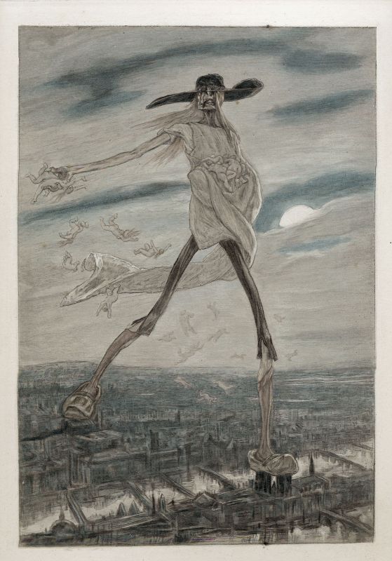 In 1874, Rops finally moves to Paris. He loves the throbbing city with its lively night life. Although he lives among many artists, he at the same time also follows the life of the lower social classes, which he loves to transfer onto paper: prostitution, alcoholism, drinking holes … The drawings of the Parisian beginnings express all the cruelty of real life. “Paris gets you in its clutches from all sides and you can suddenly no longer leave this satanic town! And yet how high-strung and devout life is here!” he writes.