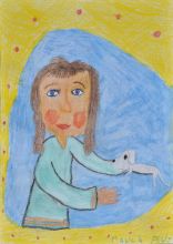 The children’s artworks can be divided into two groups. The first encompasses the image of Gal and the dwarf’s adventures in the gallery, while the second set presents the children’s re-creations of the paintings exhibited in the gallery. Children, therefore, in their own way added to the words of Svetlana Makarovič and to the illustrations of Kostja Gatnik, which they had encountered in the books Gal in the Gallery and The Ghost in the Gallery.