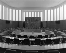 The main objective of the Interior-correspondences photographic project is to point out the ambivalent relationship between internal imaginary space of the individual and public physical architectural space of four institutions: The Parliament of the Republic of Slovenia in Ljubljana, The Parliament of the European Union in Strassbourg, UN General Assembly hall in Geneva and NATO Conference Centre in Brussels. All these spaces are explicit carriers of social structures and meanings which embody the symbolic and respectively the real power while manifesting the coming apart or uniting of the civilizational cultural-political history. Freedom, fraternity and equality in the grip of the democracy discourse? As modern bourgeois society we have been asking ourselves these questions since the times of Enlightenment and French Revolution. But perhaps these concepts are historically outlived categories, archaic monuments which are succumbed by the daily inflation of their use, never reached ideals, present only in the spectacular range of the media space? Can we today still understand evolution, progress, and revolution as excursions into the field beyond the established and verified order which is reluctant to change, a travel beyond everyday social reality and dispersed subjectivity of the individual?