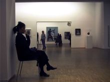 It is barely possible that photography, without a similar perception as manifest in other areas of creativity, happened to a visual artist like Kostja Gatnik. It does therefore not come as a surprise that images of powerful visual appeal dominate his photography. Because he is an advocate of new technologies, he titled his photographic series simply by the name of the camera he had used, while single photographs remain untitled, left to the viewer’s imagination. The HI 86 series seems like a photographic sketchbook of the paintings of the same period. No people, mystical mood, mysterious light. Later things change. He captures single figures in conversation with graffiti, with a painting, or simply with an empty facade. A man confronted with the surface of a painting, of a facade. Is he staring at it, or is it looking at him? Shadows, plates of concrete and paintwork on the ground, while man is present only by a part of his legs. The notation of the relationship between viewer and art continues in the Paris 03 series, in which the paintings exhibited in the galleries are in the photographer’s view placed in a “shop window”, or as in a snapshot from the Pompidou Centre, left to the fatigue of the passers-by. On this photograph the playfulness of the painting in the background is in ostentatious contradiction with the people who seem to be strolling in a park or along the street, not a gallery. In the majority of Gatnik’s photos we are abandoned to a visual pleasure. But the Šumi series from 1970 has crept in among them, which functions in an opposite manner – at least for the 1960s generation – above all as a memory. All those all too familiar faces in the photographs are full of energy, although by today that energy has long gone and many of them have passed away. That is more than nostalgia, more than a document.