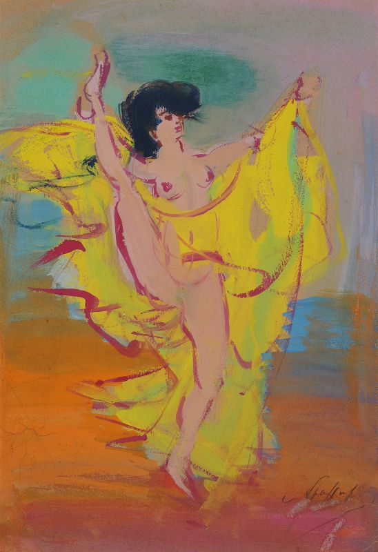 He started his creative career in Vienna just before the First World War, in its aftermath he joined the activities of the “Youth Club” (Klub mladih) in Ljubljana, which proved suffocating to his ambition and made him turn to the circle of the futurists in Trieste. His fate was similar to that of his friend Veno Pilon, who left their native Goriška region for Paris because of increasing Fascist terror. By the whim of fate, Spazzapan got stuck in Turin on his way to Paris in 1928, where he soon joined a circle of young artists and successfully exhibited with them in Paris only three years later. The drawing medium was congenial to his eruptive character. Line became his favoured expressive means and decisively marked his entire oeuvre. A passionate debater and charismatic conversation partner, he charmed the intellectual elites with his erudition and difference which he owed to the Central European culture − then a complete nonentity in the consciousness of Piedmont.