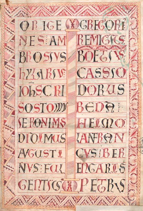 These manuscripts make up for the largest group of manuscripts in the exhibition. Although it cannot be said that a monastic scriptorium existed in Stična – a uniform and recognisable pictorial language did therefore not develop here – the manuscripts are nevertheless connected by some common characteristics. Mainly, already at first glance, they have a uniform effect in terms of colour. The Stična manuscripts make an impression with their typically colourful tendril initials, with the frequently included zoomorphic elements and with the illustrated portraits of the manuscript writers and clerical dignitaries. The splendid manuscripts, whose origin encouraged the agility of Abbot Folknand, were produced in Stična in a relatively short time, mostly from 1175 and up till 1181/1182. Ten personal painting styles can be recognised in them. Bernard went down in history as one of the famous masters, whereas others are provisionally named either by the most impressive works of literary authors (Augustine Master, Gregory Master, Isidore Master), or by the typical decorations of initials (Master of Tubular Leaves, Master of the Long Palmated Leaves …)