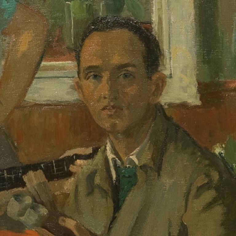 Stane Kregar (1905–1973) was one of the prominent Slovene painters of the last century, not only because of his extensive and high-quality body of work with which he made a pioneering step into the Slovene world of art, but also as a highly knowledgeable authority and an organizer who was highly regarded and respected. He worked in numerous art techniques: on paper (pencil, charcoal, tempera, gouache) and on canvas (oil), he made work in the monumental painting techniques (frescoe, mosaic, sgraffito, stained glass) and planned decorative art products (tapestry, embroidery, intarsia).