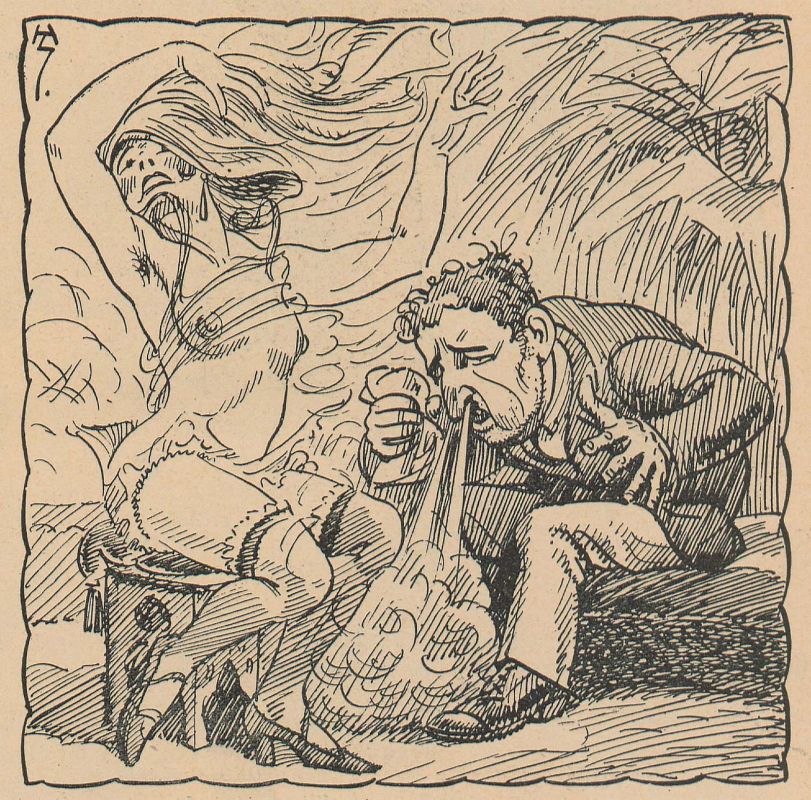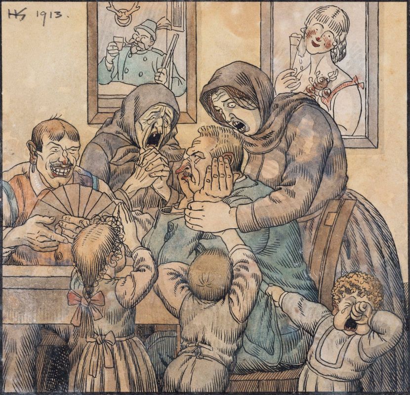 numerous tavern motifs, so dear to Smrekar, in which the desperate wife with