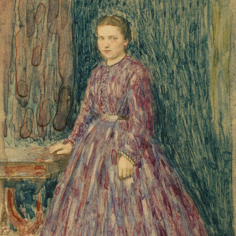The National Gallery of Slovenia houses 149 drawings and watercolours as well as 16 oil paintings by Gvidon Birolla. Four of the latter are portraits: Portrait of a Nun (dated 1900), Ivan Grohar, Feliks Birolla and Antonija Birolla. Feliks and Antonija Birolla were the painter’s parents, while Ivan Grohar (1867−1911), a Slovene Impressionist painter, liked to visit Birolla’s studio in Škofja Loka, and the works of the two artists evidence that they painted together in the surroundings of this town.