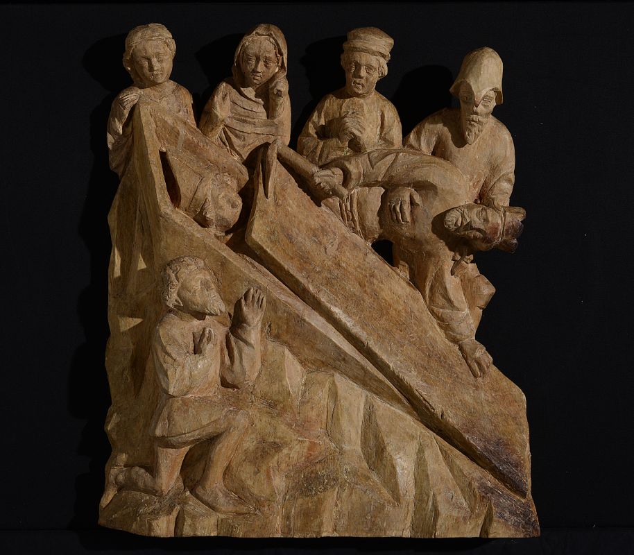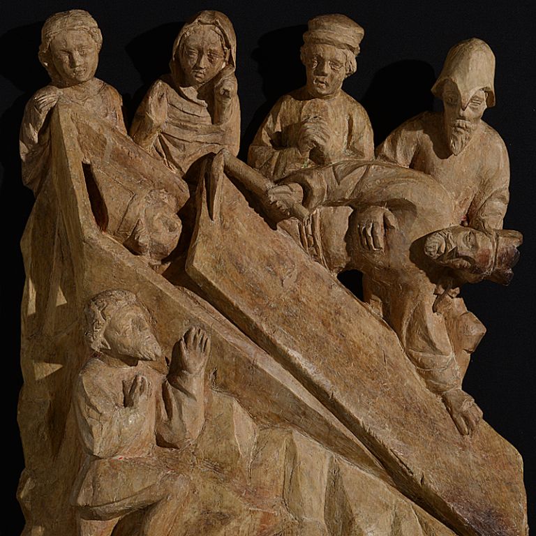 The reliefs originate from the Gothic church of St. Jodocus (Sv. Jošt) above Vransko and belong to the earliest preserved depictions of this subject matter. Their significance within a wider cultural-historical context also lies in the fact that in the area of south-eastern Alps, carved altars dating from this period have not been preserved. Judging by its subject matter and its artistic quality, the altar, of which only these fragments survive, must have been a prestigious commission which could have come from the Benedictine monastery of Gornji Grad (Oberburg) or from the Counts of Celje (Cilli), who had the office of the monastery's advocates. After all, the Counts with their original castle of Žovnek (Sannegg) were, so to say, the neighbours, away from St. Jodocus in the eastward direction only for a few-hour walk, while both were connected with the hillsides of the picturesque Dobrovlje plateau.