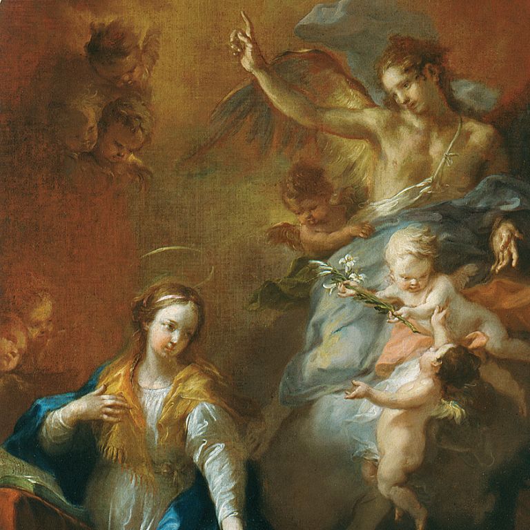 Kremser-Schmidt's painting of the Annunciation from 1771 is coming back to the permanent exhibition of the National Gallery of Slovenia in its one-time magnificent image, that is to say, framed in the original, typically Baroque-styled decorative frame. It excels in a great variety of animated ornaments carved in wood and in the use of toned and alternately burnished or matte gilding.