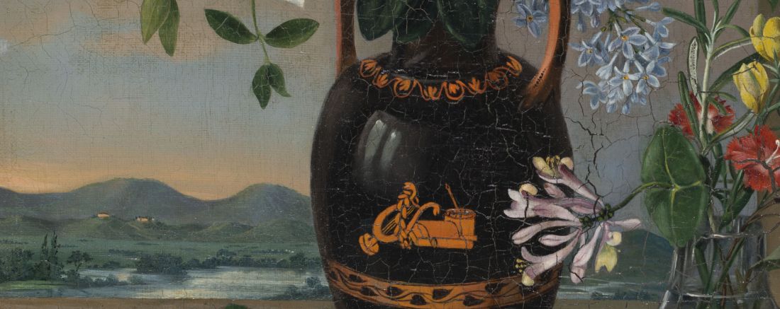 Women did not have access to academic education until the end of the 19th century. Art courses were part of the general education of middle and upper class girls, but all women with real ambitions had to rely on private schooling. The still lifes of Marija Auersperg Attems show the influences of various leading painters of the Vienna school of Biedermeier floral still lifes, which revived the golden age of Dutch painting and influential masters of the 17th and 18th centuries. Johann Baptist Drechsler (1756−1811), a remarkable painter and the founder of the School of Floral Painting, was inspired by the Old Masters, most notably by Jan van Huysum (1682−1749) and Rachel Ruysch (1664−1750). Like her artistic colleagues, Marija Auersperg Attems copied after older masters as well as her contemporaries, including Franz Xaver Petter (1791–1866), but she also knew how to freely interpret their work and introduce her own ideas and motifs.