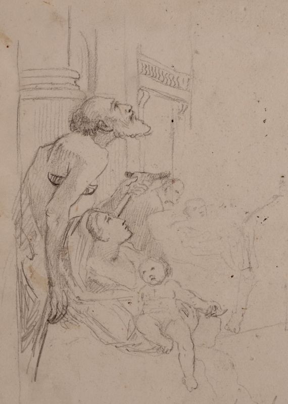 Rottmayr’s preparatory sketch. The figures and the scene are rendered in a very