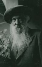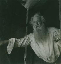 In his later years, when Jakopič was likened to the image of Moses, he had his portraits made by important photographers as well. Veličan Bešter and Fran Krašovec made his portraits on his 60th anniversary in 1929. Bešter limited himself to studio portraits of his prominent physiognomy, while Krašovec produced a series of images of the artist in his studio, where Jakopič looked like a biblical prophet. Ante Kornič photographed him almost ten years later when Anton Podbevšek prepared the monograph on the artist. Jakopič’s photos from the studio have been well known ever since, but Kornič made a veritable reportage on the old artist and his daily whereabouts. The last in line was the artist Miha Maleš. His extraordinary series of the aged man in an arched courtyard adorned with flower pots was taken only a year before Jakopič’death. Maleš also photographed him on his death-bed. That funerary portrait represents the disappearance of the long tradition started by the arts and taken over by photography. Maleš's companion on the occasion was Božidar Jakac who produced two etchings as a farewell to Moses.