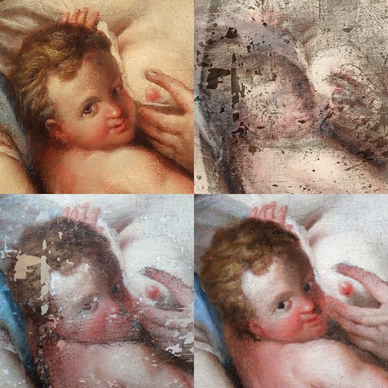 the artist's technique. Due to inconsistent retouches and overpaintings that do