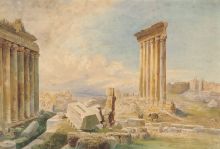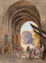 Anna Lynker was born in Vienna in a family of porcelain manufactory owners. She began to take drawing lessons already at an early age. In 1854, when she was twenty, she moved to Graz, and in 1863 she became a student of the landscape painter Johann Wilhelm Schirmer (1807–1863) in Karlsruhe. She further improved her skills at the Academy in Düsseldorf with the painter Albert Flamm (1823–1906), likewise a landscapist; thus she managed to develop thoroughly her abilities as a painter of landscapes. She painted the currently exhibited watercolours in the Middle East, where she lived and made study travels in the late 1860s and in the 1870s, so she was awarded the significant title of “pictor et viator”. She also visited Sarajevo; some of her motifs were reproduced in the Sarajevan journal Nada (1895), in which, among other painters, also the Slovenian painter Ivana Kobilca reproduced her works.