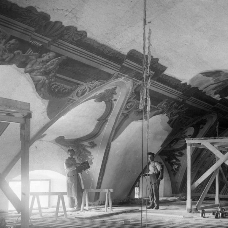of the church vaults. The badly damaged older vault painting was replaced by a