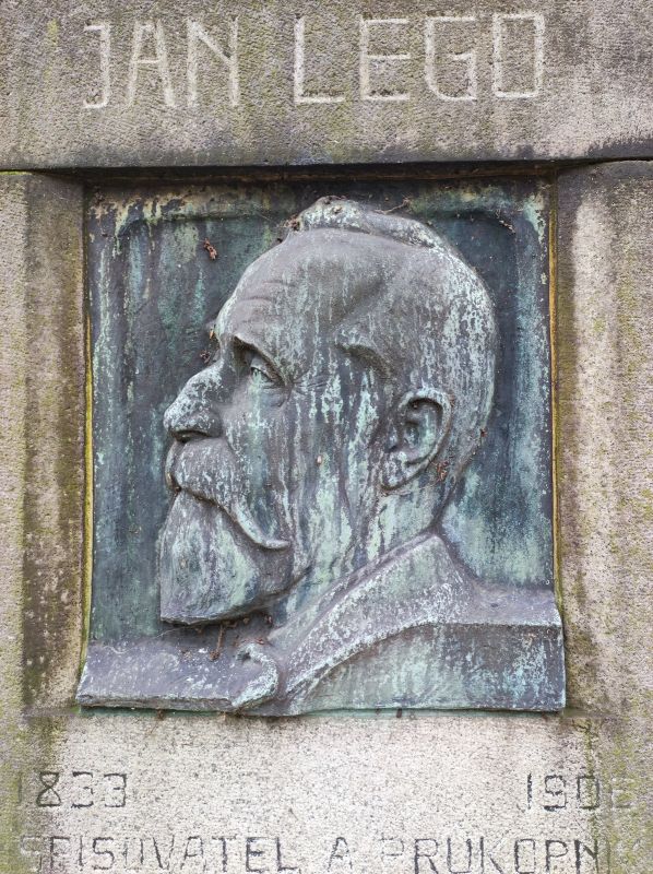 headstone which was erected in the Olšanské hřbitovy cemetery in Prague. Lego's tombstone is decorated with a square