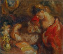After four semesters at the art academy he distanced himself from institutional education. His drawings, tiny and humble as they are, served him as short-hand jottings of compositions, and only much later he exploited the medium for problem-solving in studying details. He never intended to show them in public, therefore we exhibit them in their original function – in connection with relevant paintings selected so that they make drawings speak as vividly as they can. It is not far from the truth to say that Jakopič actually started to draw in 1926 upon winning the commission by the City of Ljubljana to paint murals in the vault of the passage from the street into the atrium of a newly built apartment complex in Njegoševa street, popularly referred to as "Meksika". Hic Rhodus, hic salta! he had to take up drawing to develop monumental compositions for public space. The project fatally determined Jakopič's subsequent work. Besides The Stranger and flower still-lifes the rest of his subjects originated in the studies for Meksika which fetched hundreds of drawings. Jakopič lulled himself into believing that Meksika was the opportunity to realize his opus magnum, although the task was at odds with his earlier tenets. It was not a prospect for a happy ending, the murals deteriorated to obliteration and they survive in drawings only.