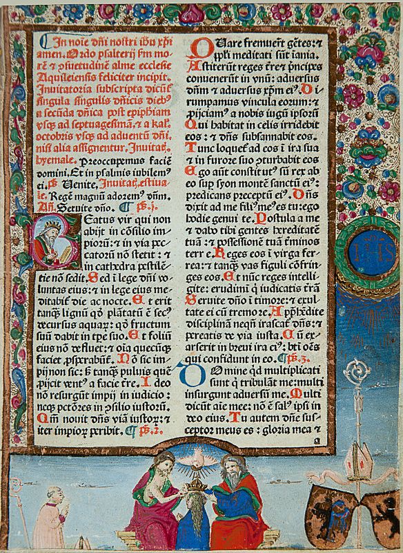 Bartolomeo del Tintore. In the lower margin of the first page the Coronation of