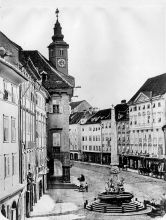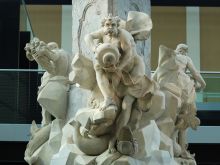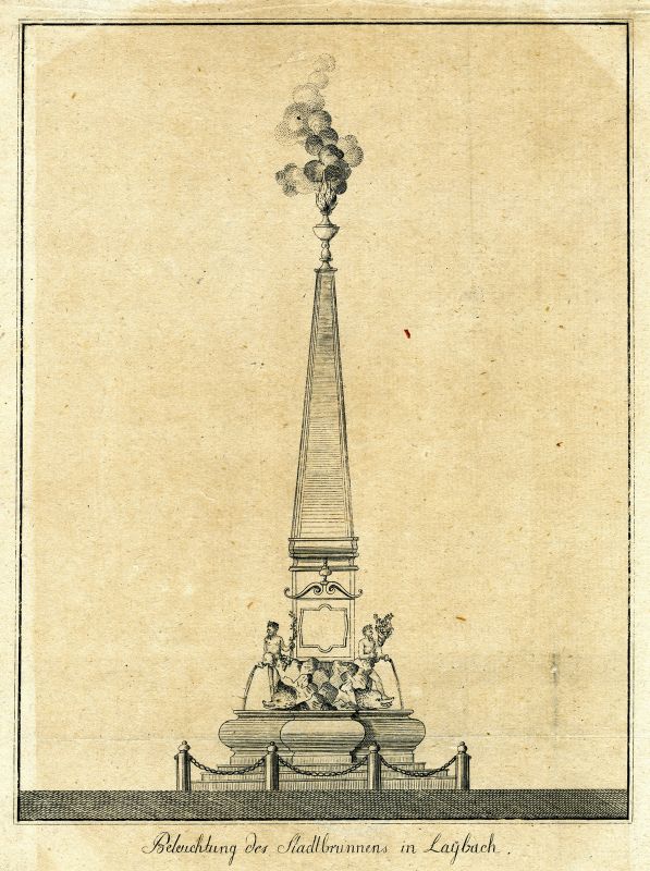 During the 19th and 20th centuries the fountain and pavement around it lived to see many changes. Also lost are the original steps and stone corner columns, whereas particularly the figures, produced out of Carrara marble, suffered much damage during the recent decades. After three decades of work, the original at Mestni trg was replaced by a copy in the autumn of 2006, and the restored original was installed in the National Gallery of Slovenia in the summer of 2008.