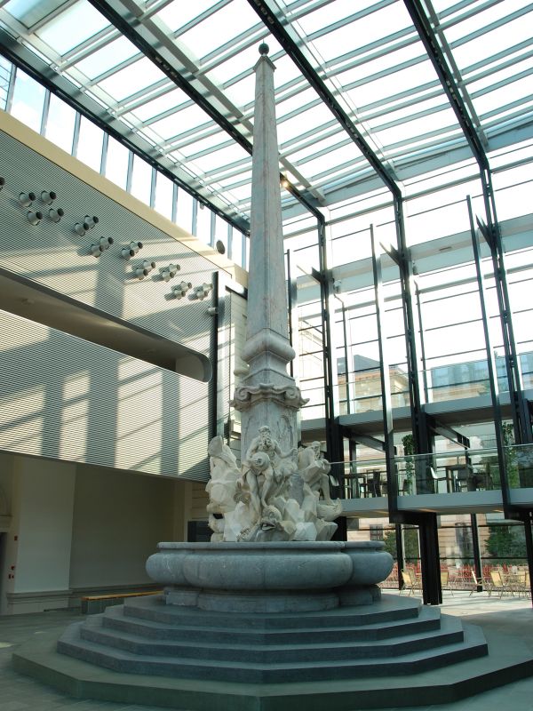 The exhibition The Robba Fountain – The Story of the City’s Symbol is tied to the set up of the original fountain in the middle wing of the National Gallery of Slovenia. The fountain of the three rivers of Carniola is one of the most important Baroque monuments in Ljubljana, and Slovenia, as well as one of Ljubljana’s most recognisable symbols. In 1743, it was commissioned by the city authorities from Francesco Robba (Venice, 1 May 1698–Zagreb, 24 January 1757), who was the leading sculptor and stonecutter in the city of the time, and is also today considered to be the most important Baroque sculptor in Slovenia. Robba, trained with Pietro Baratta in Venice, got the basic idea for the fountain from Bernini’s Fountain of Four Rivers in Piazza Navona in Rome. However, Robba’s design seems more specifically indebted to the fountain in Rome’s Piazza della Rotonda, which was remodelled into today's form by Filippo Barigioni in 1711. Robba skilfully remodelled the rectangular plan of Barigioni's Roman fountain into a lighter and slimmer triangular form, hence adapting his creation to the three directions from which passers-by could reach the area in front of the Town Hall. Three corpulent male figures holding water jugs were only several years after the fountain’s installation recognised as the River Gods of the Sava, Krka and Ljubljanica, whereas its name of today – The Fountain of the Three Rivers of Carniola – took hold of the monument in as late as the first half of the 20th century.