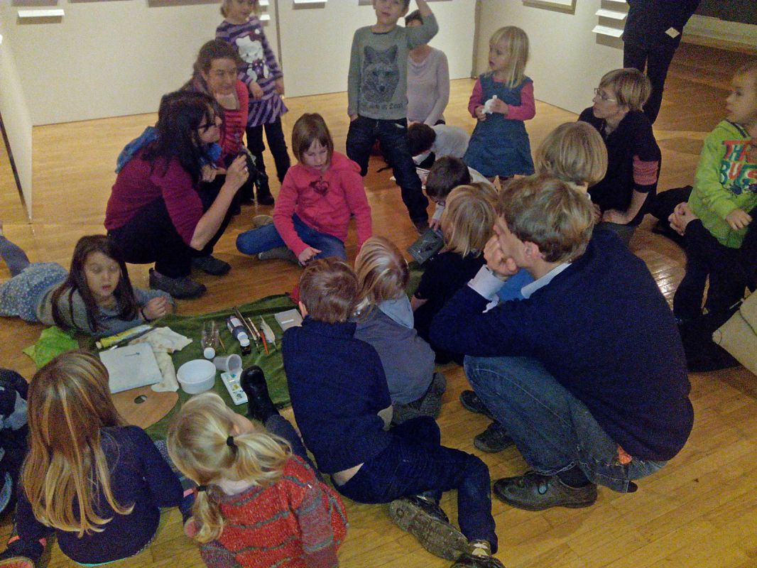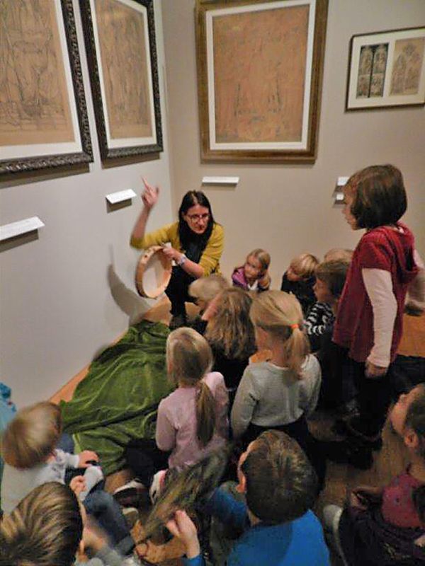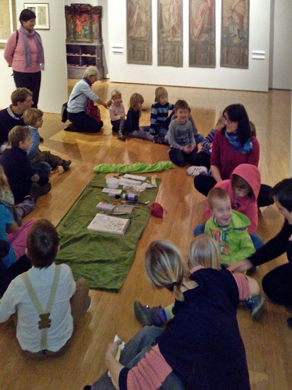 Children and parents are invited to independently search for works of art with the help of Gal's Green Chest or printed details of exhibited paintings. For completed tasks and finished colouring pages children receive Gal's present. In the Entrance Hall you can piece together enlarged reproductions of selected paintings.