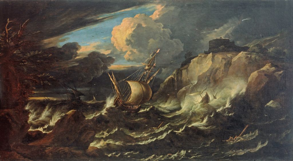 This is one of the most monumental of Pietro Tempesta’s seascapes. His exceptional skill in the depiction of both rough seas and stormy skies is shown here in a series of motifs, especially as regards luminescence. The sky is particularly effectively painted, opening in the middle between a number of very differently shaped clouds. This painting can be compared to similar examples in the Galleria Doria Pamphilj in Rome, in the Galleria Estense in Modena and in the Borromeo collection on Isola Bella on Lago Maggiore.
