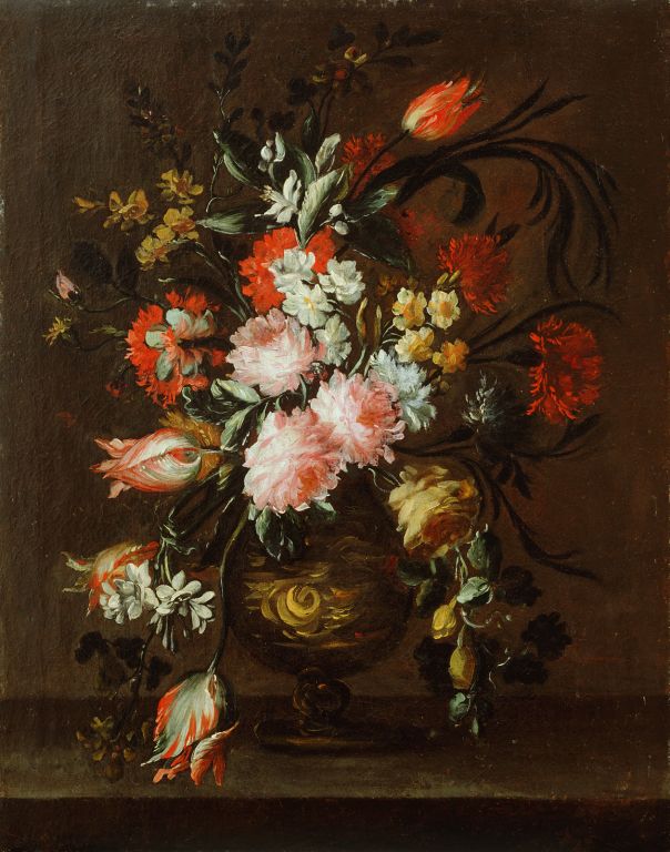 Vase of Flowers and a Tulip Hanging Down to the shelf