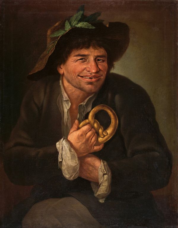 The slyly smiling Man with a Pretzel is direct, almost vulgar. An open, gap-toothed smile was considered to reflect coarseness and an inability to control one’s feelings, characteristics attributed to the lower, marginal and delinquent classes of society. We may assume that Bergant’s pictures, as comic genre figures, thoroughly amused his noble client and the elite company of which he formed part.