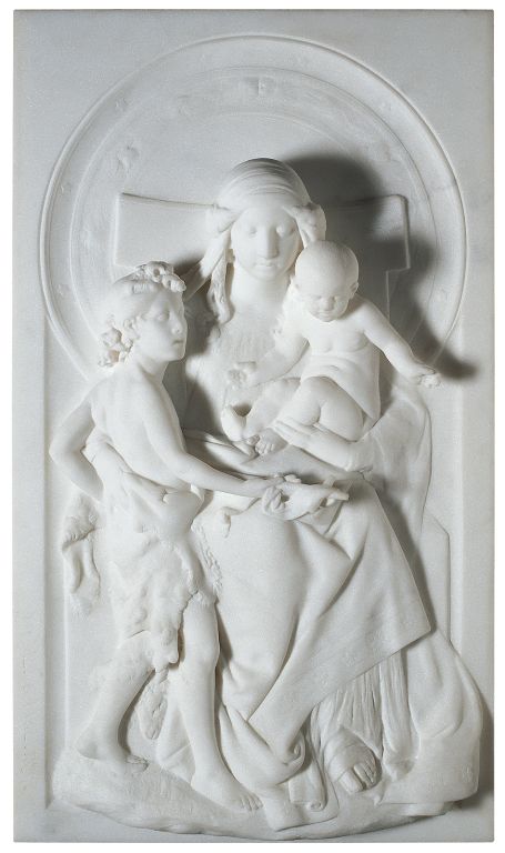 The relief, especially the modelling of Mary’s facial features, clearly draw on Renaissance ideals of composition and beauty, specifically on Raphael’s painting Mary with the Child, a copy of which Gangl owned.