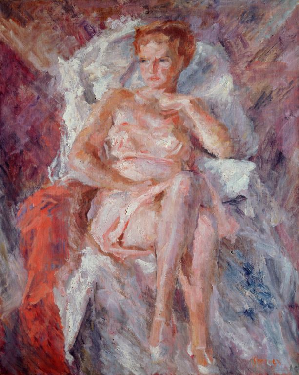 In a very different way the world of a lonely middle-class woman is revealed by Matej Sternen. His The Red Parasol shows a fashionable and self-confident townswoman taking a walk in the English Garden in Munich or in Tivoli Park in Ljubljana. After 1911 the painter devised in ambitious formats a number of nudes and young women dressing or being engaged in some other intimate business. The skill of his brush speaks about sensual luxury and creates thoroughly convincing equivalence between the real and re-created worlds. The suggestive look of white taffeta or various shades of silk create a sensual aura for middle-class women whom the painter’s compositional strategy offers to an uninvited, or sometimes provoked, gaze.