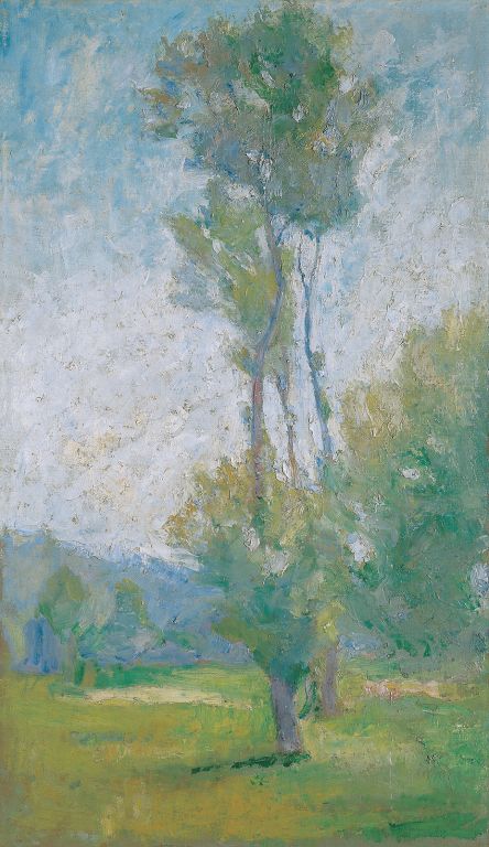 The discussion about national art took a new direction after the exhibition of the Sava artists’ society in the Galerie Miethke in Vienna in 1904, when Viennese art critics recognized a new painting province of the Empire in the paintings of Slovenian artists. In spite of his determination to withdraw from the ill-tempered attitude of the local scene, Ivan Grohar exhibited his painting Spring, the central piece in the above-mentioned exhibition, in the Sezession the following year under the title From My Homeland. A series of paintings suggestive of plein-air thus established themselves in public as a gallery of symbolic images of the homeland. The period of impressionistically formulated landscapes lasted until Grohar’s Sower of 1907, which is a programme-based image in which the earth and the man reach mythical identification through handling of paint, and a Carniolan hayrack appears in the picture as a national attribute of the agricultural worker. Within the Slovenian artists’ group Vesna, to which Maksim Gaspari, Gvidon Birolla and sculptor Svetoslav Peruzzi belong, a popular variant of national motifs dominated which relied on direct examples of folk tradition and creativity. The proximity of the two theses is revealed by the comparison between Birolla’s (Landscape) and Grohar’s (A Hillock) landscapes, the motifs of the same topographical area. The ideological use of the term “Slovenian Impressionism” is clearly paradoxical in view of the motifs of Lower Austria or Croatia by Matija Jama (Willows, Village in Winter, Bridge on the Dobra, etc.), but the artist’s obsessive dealing with light throughout his life imperceptibly incorporated them into the notion of the national. If impacts of Art Nouveau can be traced in his pictures, Jama’s painting, based on a skilful painting routine and self-discipline, is pervaded by reasoned distance and exaltation of the visual.