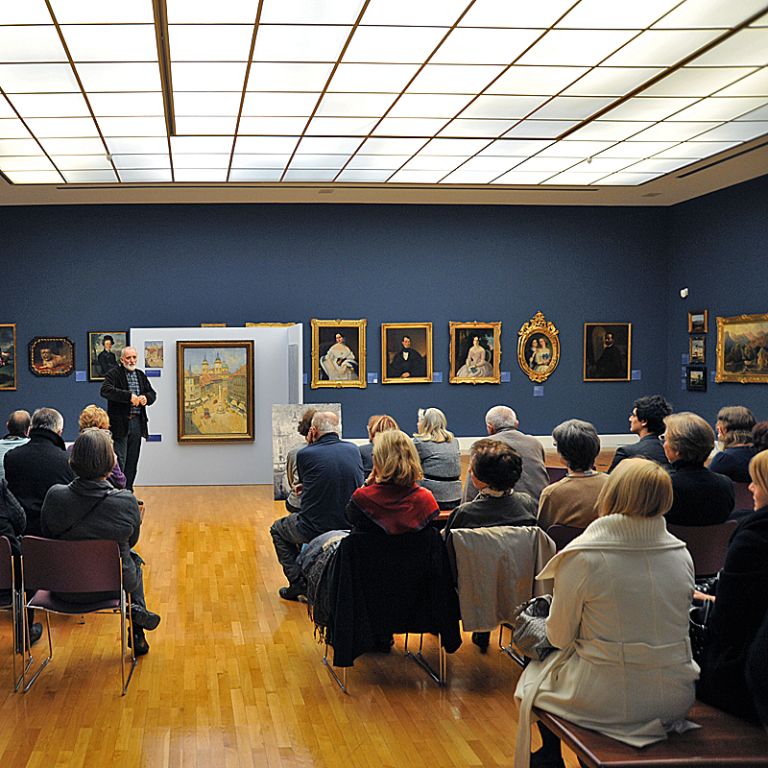 Guided tours of exhibitions at the National Gallery of Slovenia are available to groups of foreigners in a foreign language by prior arrangement. One group can include up to 30 people. Larger groups are divided into smaller ones, which is always determined when you book your visit. If you are planning to visit with a large number of guest, note that the gap between two groups is half an hour.
