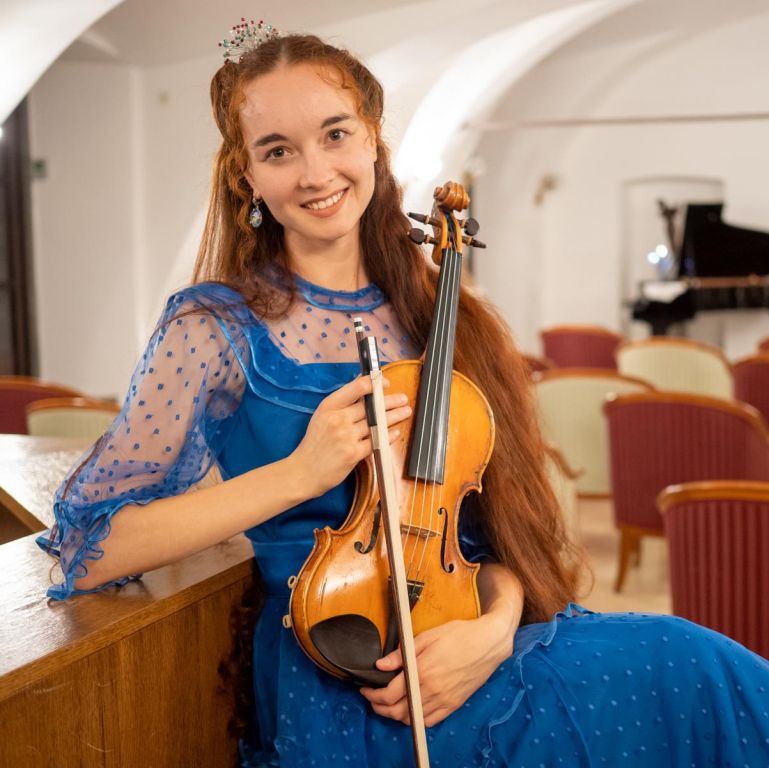 otroke. Je redna študentka violine na Univerzi za glasbo in upodabljajočo