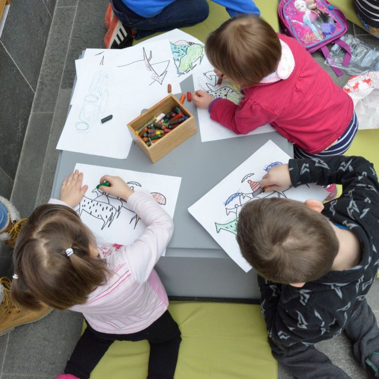 Cena vključuje: vstopnino na stalno zbirko in na občasno razstavo, vodenje, varstvo otroka, ustvarjalni material, kosilo, malico in pijačo