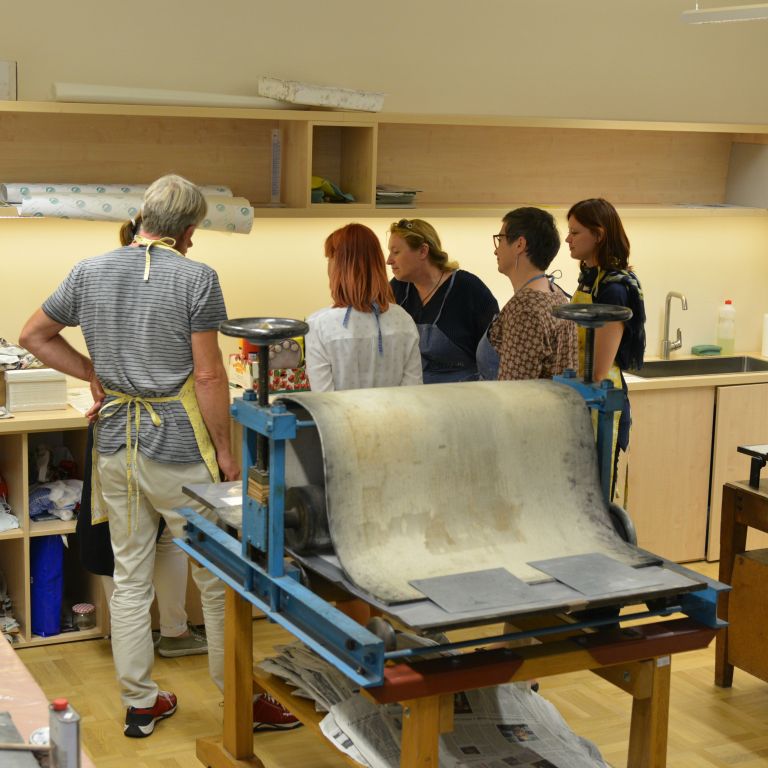 Na tečaju bomo spoznavali kombinirane tehnike globokega tiska, kolagrafije in karborunduma ter uporabo šablonskega tiska iz različnih materialov. Tečaj je prilagojen predznanju udeležencev, ki so opravili začetni tečaj oz. že poznajo osnove grafičnih tehnik globokega tiska.