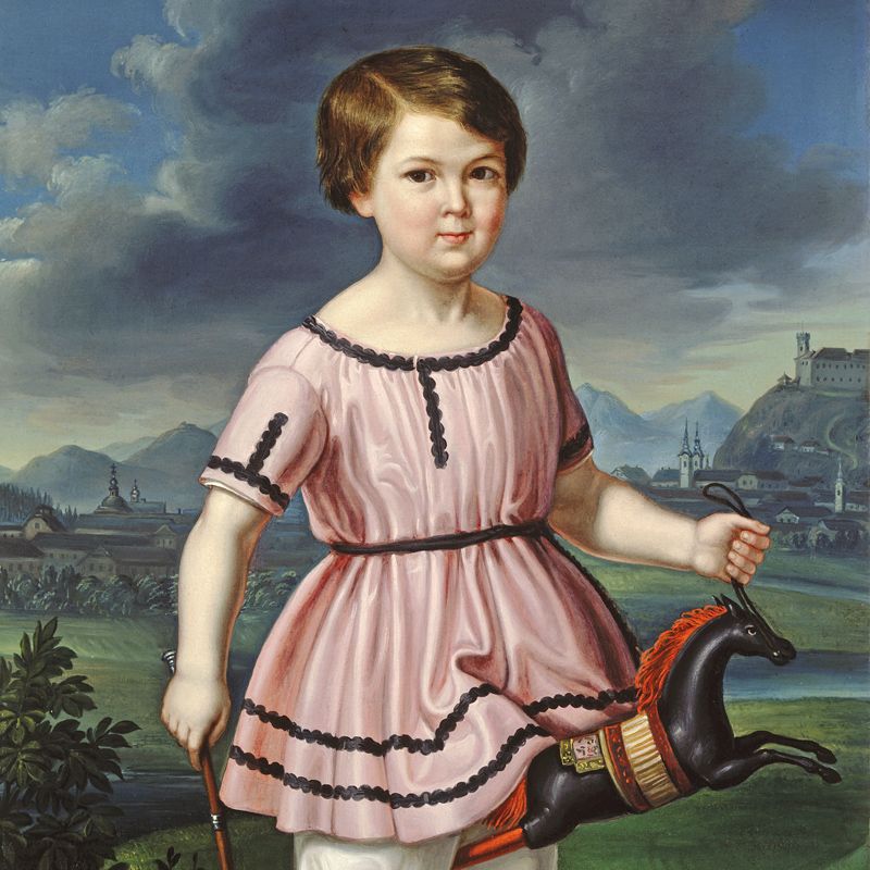 Ogledali si bomo otroške portrete v stalni zbirki in raziskovali, s kakšnimi predmeti ali hišnimi ljubljenčki so otroci naslikani. Spoznali bomo tudi slikarke in slikarje, ki so jih upodobili. V delavnici bomo s posebnimi barvicami naslikali svoj avtoportret z našo najljubšo igračo ali kosmatinčkom. Kdor bo želel, bo svojo risbo lahko obogatil še s čopičem.