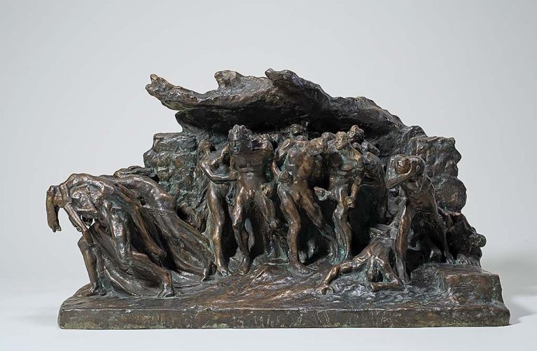 The high-relief is characterized by restless, wavy movement of the figures and a variety of body postures. The postures and the faces are emphasized and intensely emotional. In the foreground, individual bodies stand out from the background, where the bodies merge into formless masses. Everything is being gradually engulfed in the devastating tongues of flame. The mood of the catastrophe and human helplessness is expressed in a typically modernist visual language. Zajec became acquainted with it through the works by Auguste Rodin when he was living in Paris between 1906 and 1909. The most influential work by Rodin, the Gate of Hell, essentially marked all subsequent sculptural production of Zajec. Rodin exerted influence on Zajec by the picturesque modelling, the agitated surface of sculptures and sharp contrasts of light and shade.