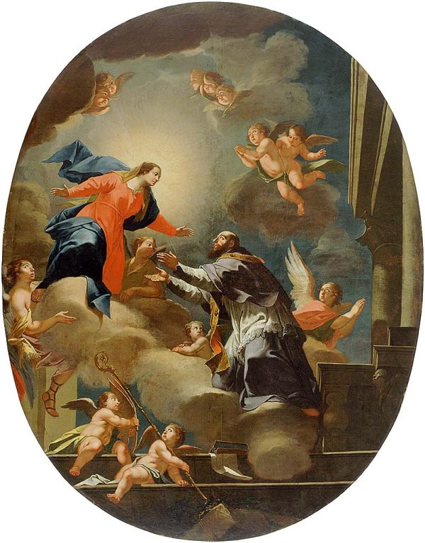 San Francesco di Sales (1567-1622) fu un santo popolare durante l'epoca barocca. Era un discendente dell'aristocratica famiglia francese dei Sales, per questo era denominato Salesius (di Sales). Studiò legge a Parigi e a Padova, poi divenne sacerdote, dedicandosi al lavoro missionario sul lago di Ginevra. Fu appassionato devoto di Santa Maria, instancabile predicatore, famoso confessore e co-fondatore dell'Ordine della Visitazione (Suore Salesiane). È anche considerato il patrono della stampa e degli scrittori cattolici.
