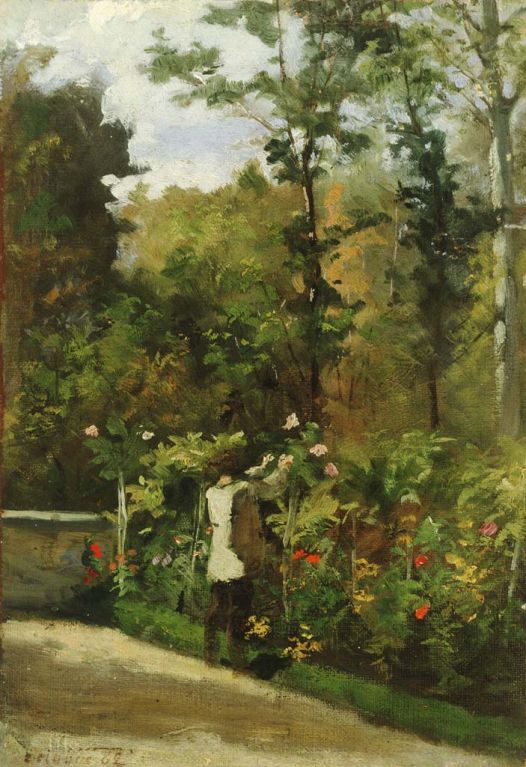 Trascorse l'anno 1882 in Normandia, dove, influenzato dai colleghi francesi, creò frammenti di paesaggio all'aperto e dipinti di genere. Trascorse l'inizio dell'autunno 1882 con la famiglia del pittore Desrivières, che dipinse insieme alla madre. In questo periodo dipinse un piccolo schizzo intitolato Il giardiniere, che rivela la sua indole rilassata, sensibile alle nozioni di colore e di luce. La figura del giardiniere che taglia le rose che vediamo nel quadro e la chiara visibilità dello spazio che indicano che la sua opera era ancora basata su concetti realistici e narrativi, anche se, in termini di contenuto, l'opera d'arte è tuttavia completamente dominata dal verde lussureggiante della vegetazione. Le pennellate sciolte e veloci del pennello e le vivaci macchie di colore esprimono il desiderio di avvicinarsi il più possibile ai colori della natura.