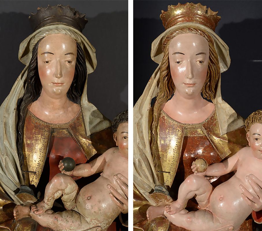 Mariji z Jezusom je kipu poskusil povrniti izvorni videz iz zgodnjega 16.