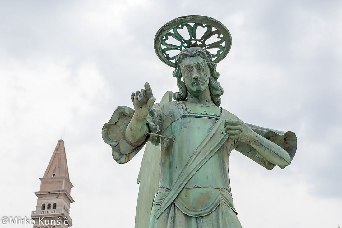 stoletja. Predstavljen je zahteven poseg na kovinskem piranskem nadangelu