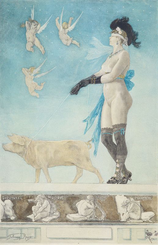 Ženska, golota in seksualnost v Ropsovem delu zavzamejo pomembno mesto. Rops ne skriva, da ljubi ženski spol in da z umetnostjo skuša pretresti prepričanja svojih sodobnikov, ki se mu zdijo preveč malomeščanski in puritanski.
