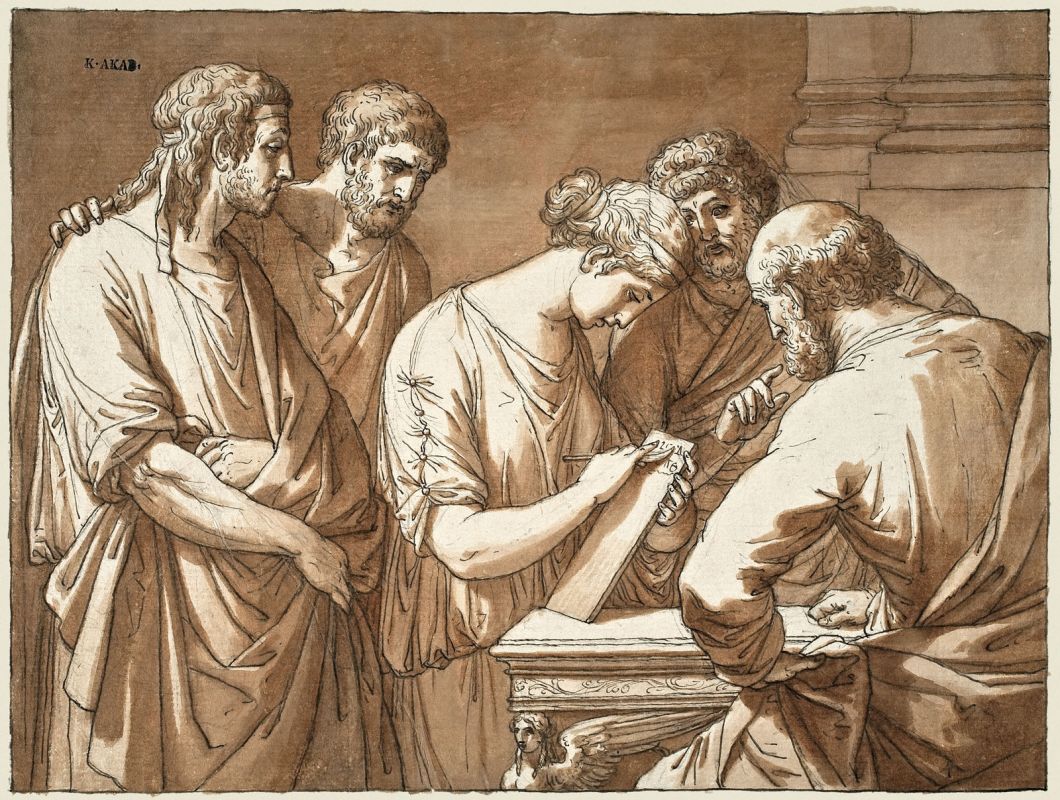 Iz obsežnega dela klasicističnega slikarja Franca Kavčiča (Gorica 1755 – Dunaj 1828), slikarja slovenskega rodu in dolgoletnega profesorja na dunajski umetniški akademiji, so to pot razstavljene in obdelane umetnine, ki zajemajo grške in rimske mite, Homerjeve in tematsko sorodne pripovedi, antične pripovedi in prizore iz antične zgodovine.