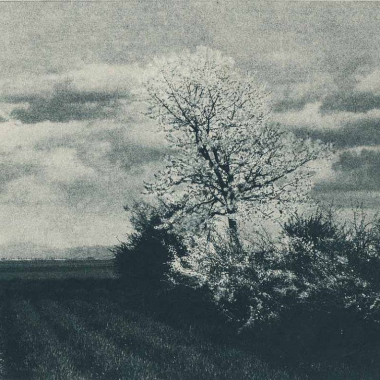 Impresionizem je dodobra raziskal meje vizualnih krajšav, do katerih je še mogoče potiskati slikarsko potezo, da hkrati še ohrani svojo referenčno učinkovitost. V srednjeevropskem krajinskem slikarstvu se je ob novoromantičnih tendencah ponovno aktualiziral pojem liričnosti narave (Naturlyrismus), v okviru katerega najdemo tudi številne podobe različnih dreves. Vitalna podoba cvetoče jablane je postala nekakšen simbol preporoda likovne umetnosti v srednjeevropskih središčih, še posebej na Dunaju. Na Bertholdovi fotografiji in na Groharjevi sliki najdemo številna ujemanja, ki se seštejejo v poudarjeno liričen učinek podobe. Mehko valovanje krajine v Groharjevi Pomladi dopolnjuje mehko oblikovano mlado jablanovo drevo. Skozi njegove redke veje se nam odpira pogled v krajino. Razdrobljeni in neurejeni dotiki čopiča in slikarske lopatice mehčajo konture oblik, tako da se vpijajo v valovanje njiv, vzpetine in neba. Groba zrnavost gumijevega postopka na Bertholdovi fotografiji ima podobno funkcijo. Pobeg v prostor po levi strani in mehak prevod temne oblike grmovja preko krošnje v nebo ustvarja razpoloženje čustvene vzhičenosti in vživetja v v prerajanje naravnih energij.